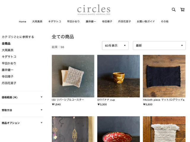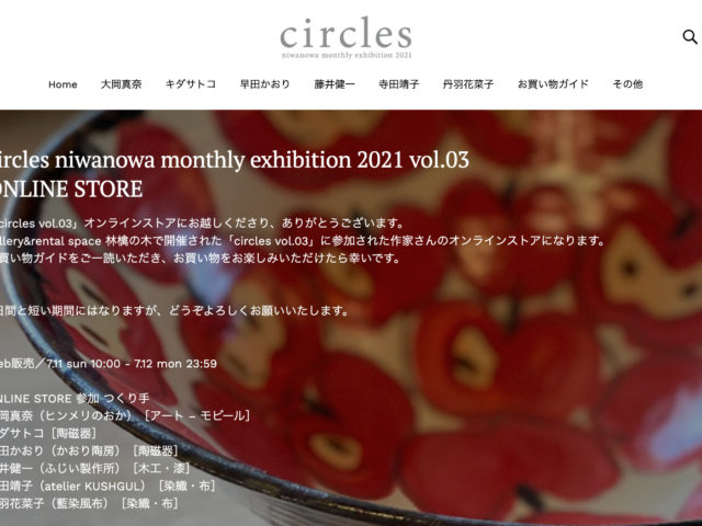 お知らせの記事一覧 お知らせ 「circles vol.03」 ONLINE STORE オープンいたしました 2021.07.11 お知らせ 明日10時より「circles vol.03」 ONLINE STORE オープンいたします 2021.07.10 お知らせ 「circles vol.03」ご来場ありがとうございました 2021.07.07 お知らせ 【セルフ梱包とエコバッグの持参のお願い】 2021.07.02 お知らせ,アクセス・交通 circles vol.03 会場のご案内 2021.06.30 お知らせ,出展者 「circles vol.03」出展者のみなさんをご紹介します 2021.06.28 もっと見る