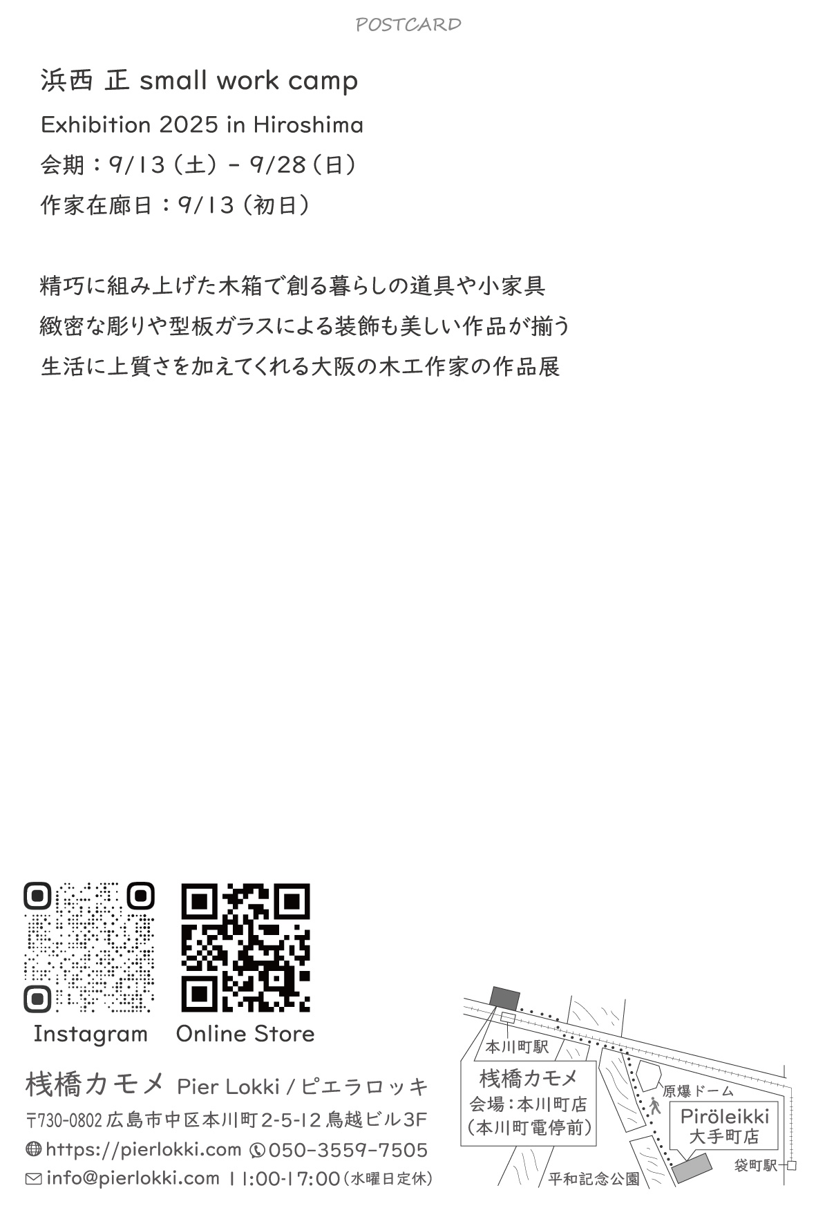 - Open 11:00-17:00 / ※水曜日はお休み / ※在廊予定 9月13日 11:00-15:00